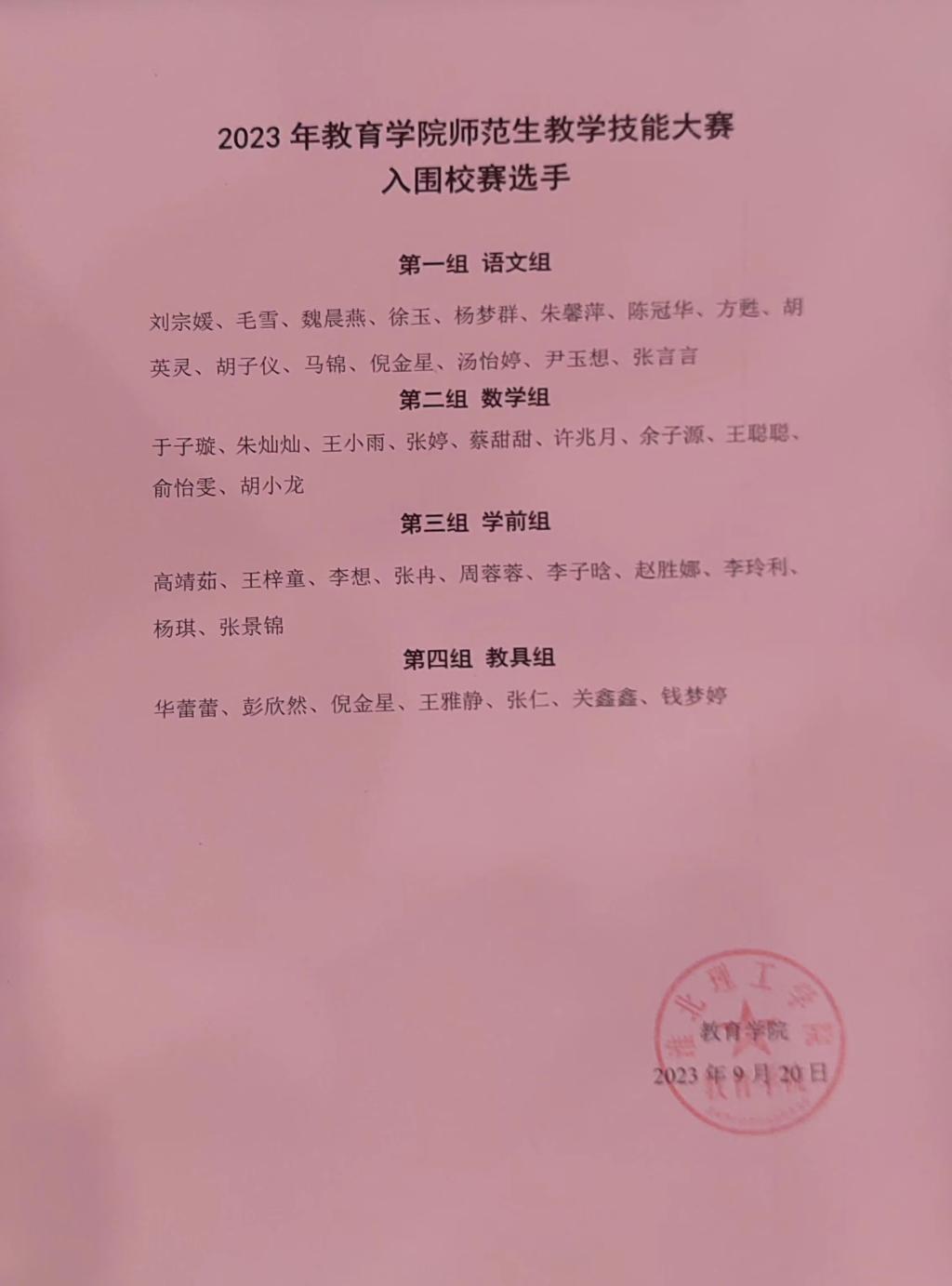 2023年必赢国际437官网师范生教学技能大赛入围校赛名单公示