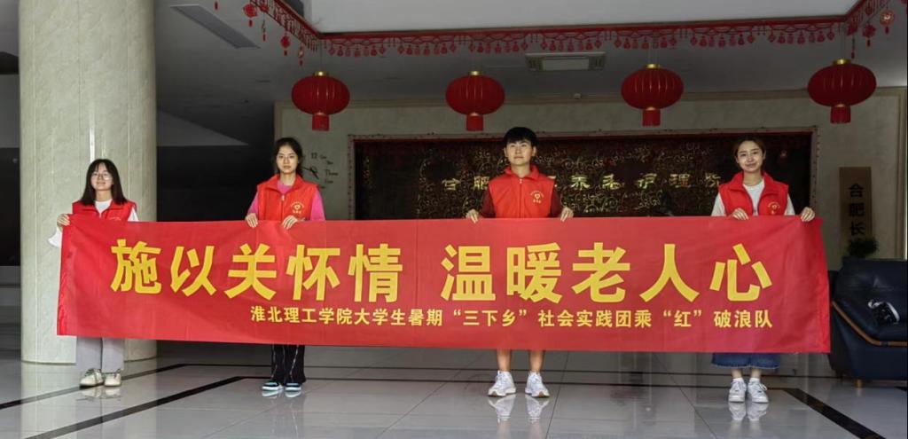 2021级应数2班杨梦媛的所在团队为亳州市谯城区儿童福利院的孩子们送去力所能及的温暖。而与此同时“乘‘红’破浪”团队在队长2021级英语4班罗瑞的带领下来到合肥市包河区长江养老院给孤独的老人们剪指甲、照料身体、唱歌、聊天,进一步弘扬了敬老、爱老、助老的中华美德,营造了关爱老年人的良好氛围,展现了当代大学生尊老爱老的良好风气。