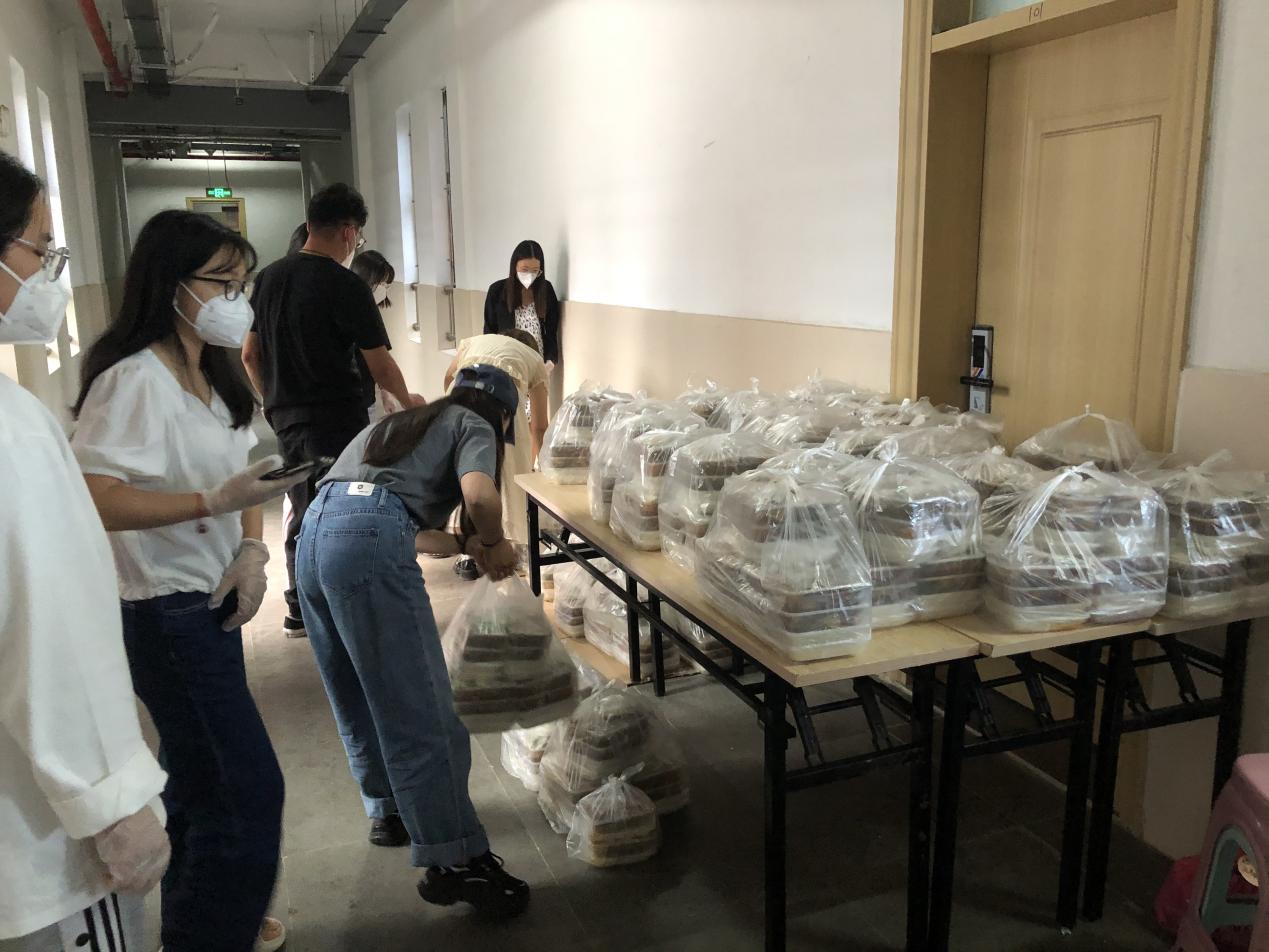 疫情防控是淬炼初心的熔炉,也是磨砺精兵、书写担当的考场。在疫情防控工作中,学院在1号宿舍楼召集志愿者70名,在保障自身安全的前提下组织志愿者们送餐上门,她们在各楼层热心为同学送餐,用行动体现了“强担当、筑堡垒、当先锋”的新时代青年风采。“疫情面前没有旁观者,疫情防控没有局外人”,这是每一位志愿者们无私奉献的心声,更是她们有责任有担当的无尽显现。