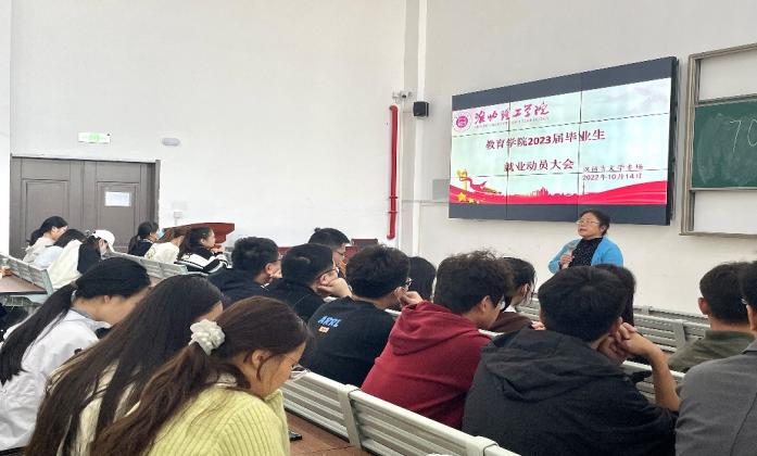 为贯彻落实学校就业工作要求,促进学院毕业生积极就业,提高就业质量,2022年10月14日上午,必赢官网在1教121教室分专业召开2023届毕业生就业动员大会,学院分管副书记孟向红、辅导员彭慧敏、何茹雪带领2023届英语和汉语言文学专业毕业生分别参加了动员大会。