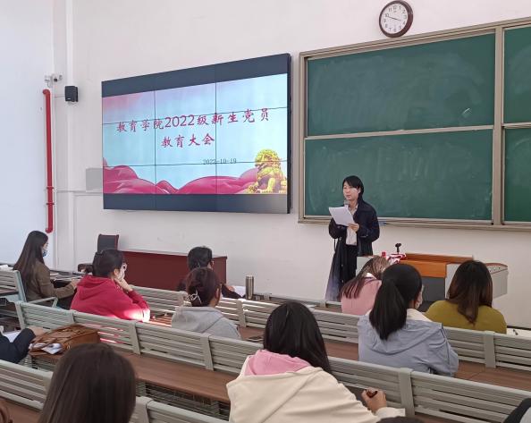 2022年10月19日下午,必赢国际437官网在1教121教室召开新生党员教育大会。学院分管副书记孟向红、2022级全体辅导员以及全体新生党员参加了会议,会议由学生支部书记任若晨主持。