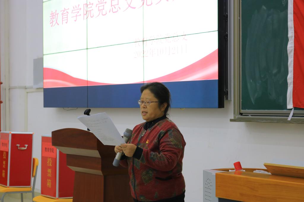 蓝图指明前进方向,实干拥抱新的征程。10月21日,中国共产党必赢国际437官网总支部党员大会于一教121教室召开。校党委委员、党建办公室主任付金沐同志、校党建办公室陈蓓同志受邀列席本次大会,必赢国际437官网院长王家云,副院长孟向红,全体教职工和学生党员、预备党员近200人参加本次大会。会议由学院副院长孟向红主持。