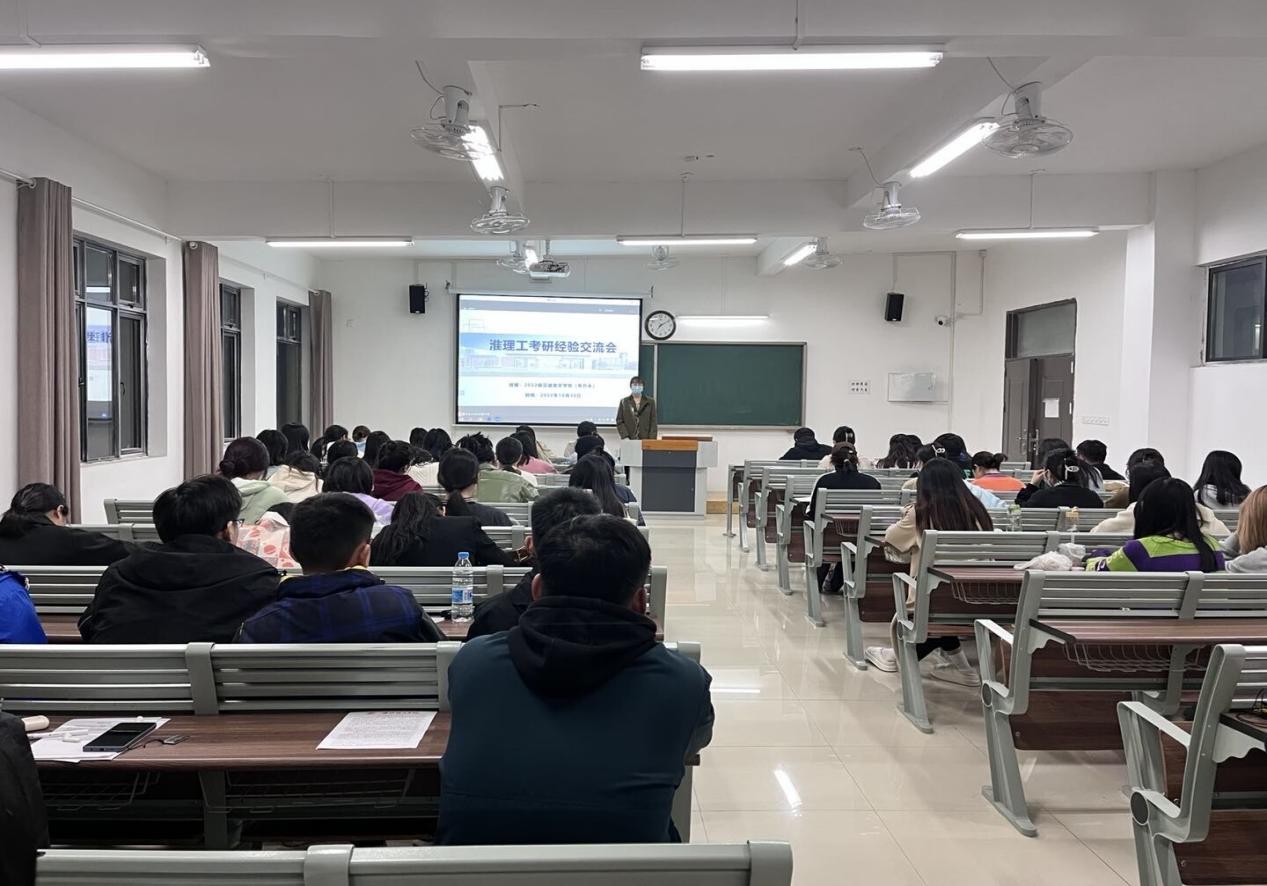 在交流会上,考研取得优异成绩的学长从自身考研经历出发,介绍了关于考研的具体流程,围绕如何选取专业和院校、制定复习计划、调整心态以及复试中的注意事项等方面谈了自己的体验和感受。