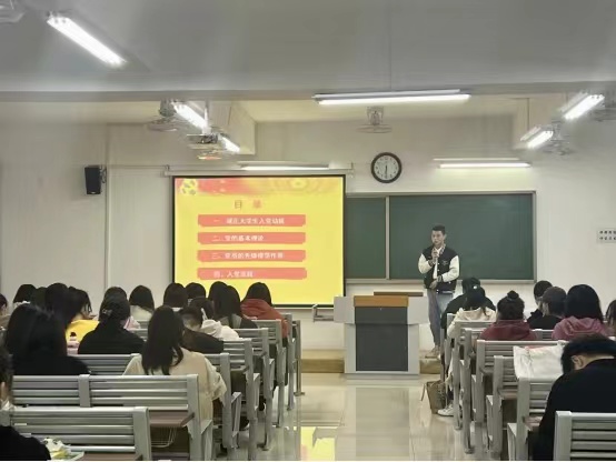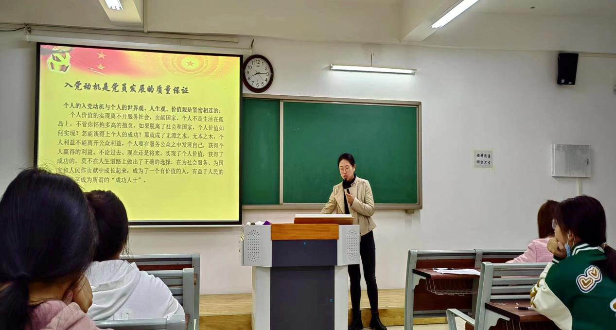 会议上,辅导员充分肯定了同学们积极向党组织靠拢的美好愿望。指出:青年学生的前途在于党的正确领导,青年学生的成长离不开党的培养,争取入党有利于青年学生全面发展。集体谈话会上老师们通过PPT向同学们介绍党的基本知识、基本理论以及大学生党员的质量标准、加入党组织的必要途径和流程等,并就“大学生怎样争取实现入党愿望”提出了明确的建议。