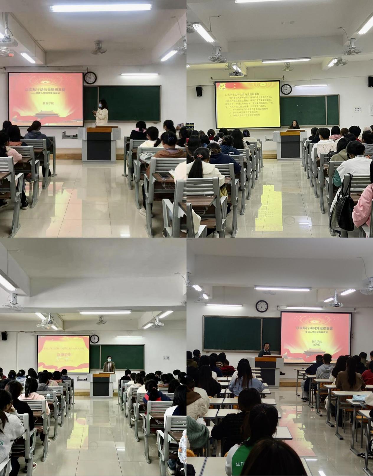 在集体谈话会上,辅导员老师们鼓励大家积极发言,阐述自己的入党动机及对党的认识,并就自身目前存在的主要问题进行自我剖析。在听取了同学们的发言后,老师肯定了大家积极入党的意愿,指出作为新时期的大学生要立足当下,积极进取,深入学习贯彻习近平新时代中国特色社会主义思想,要把此次谈话作为自己前行道路上的加油站,时刻以优秀共产党员的标准严格要求自己,以更加饱满的热情、更加良好的状态、更加端正的态度投入到学习与生活中,争取早日成为一名合格的共产党员。