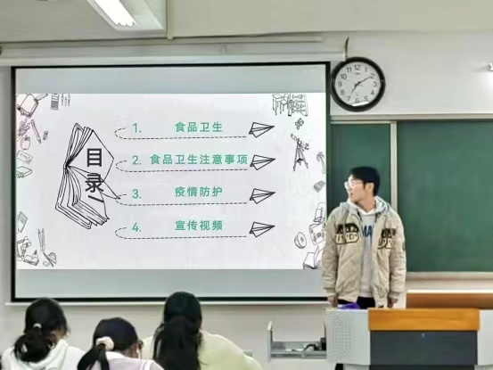 食品安全关乎民生,更关乎广大师生的身体健康。为进一步加强校园食品安全宣传和疫情防控工作,有效防范食品安全风险,必赢国际437官网2022级各专业49个班级于11月下旬在1号教学楼召开食品卫生防疫主题班会。