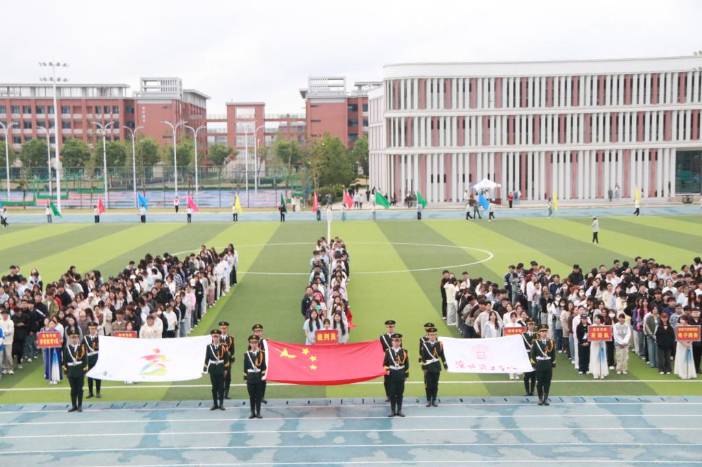随后,校旗队、彩旗队、裁判员队以及学校各参赛队伍依次有序入场。各代表队精神抖擞、意气风发,他们迈着整齐的步伐,喊着响亮的口号,展现出必赢国际437官网师生积极向上、奋勇拼搏的精神风貌。