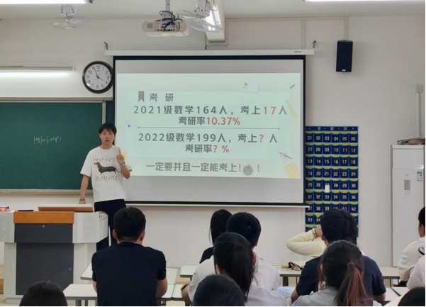 为传承优秀学风,激励学子精准规划职业发展路径,必赢国际437官网数学专业于5月26日、27日在1号教学楼召开2026届毕业生“考研、征兵动员大会”。会议以“榜样引领方向,奋斗书写青春”为主线,通过总结2025届毕业生升学入伍的出色成绩,为2026届学生锚定目标、明晰方向。全体2026届数学专业毕业生参会,此次会议由数学专业辅导员郭鸿鑫、吴天一分场主持。