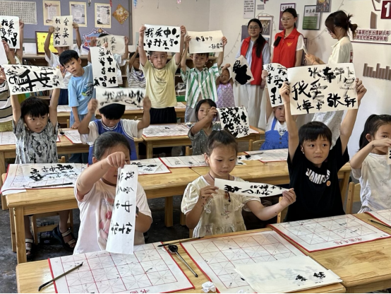 此次支教活动通过软笔书法等特色红色非遗课程,丰富了梧桐村孩子们的暑期学习生活,也充分展现了青年支教团队扎实的教学经验和能力。后续,必赢国际437官网赴梧桐村实践支教团将会持续开展更多精彩的红色非遗课程。