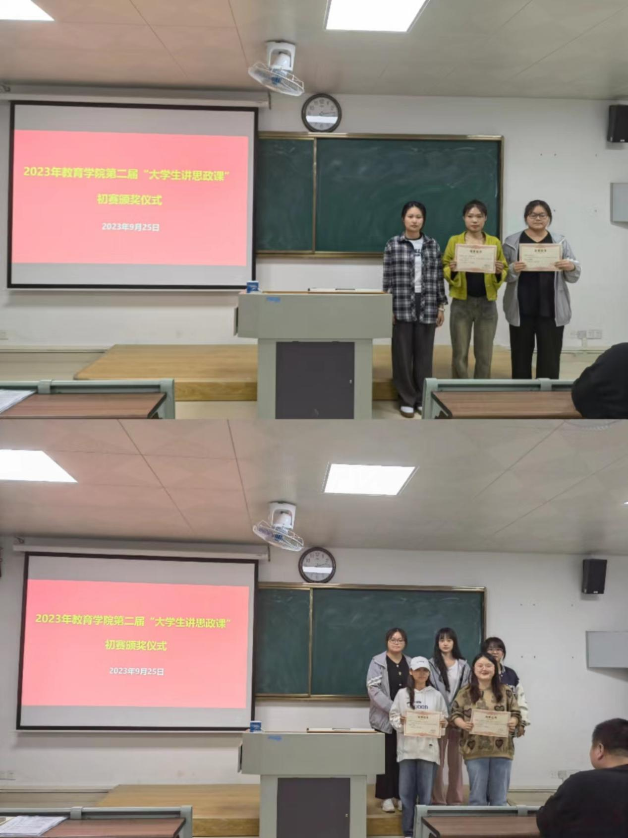 颁奖仪式开始前,张凌云同学对本次“大学生讲思政课”初赛作了简单的说明,并介绍了参加本场颁奖仪式的老师们,接着分别宣布了获得一等奖、二等奖、三等奖以及优秀奖的选手名单,负责颁奖的老师分别向获奖选手颁发荣誉证书。