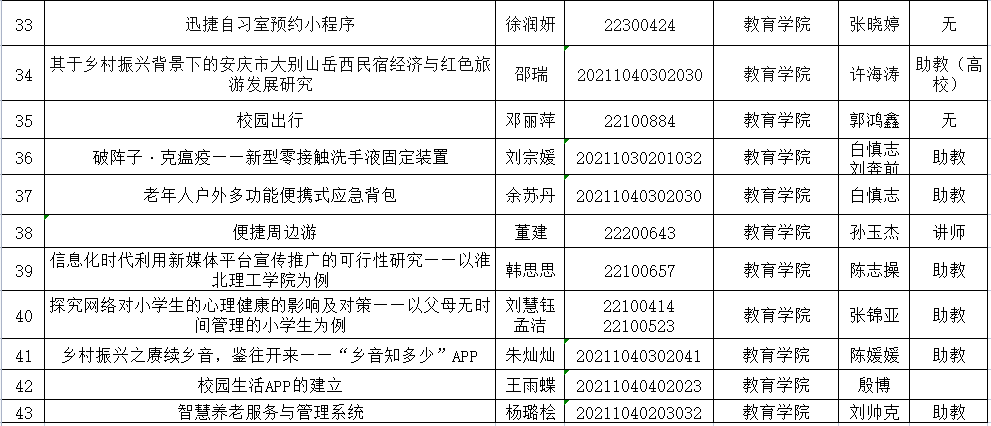 热烈祝贺必赢官网李成城、高微、丁思滢、李静怡、袁荣彬等43名大学生成功获准2022年安徽省大学生创新创业计划项目省级立项。具体详细名单请见附件!