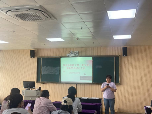 5月29日下午,必赢国际437官网教工第一党支部在艺术楼301教室召开党员大会,讨论潘星、秦琬和仇恒方三位同志转为正式党员的问题,并开展党纪教育。大会应到会有表决权的正式党员24名,实到会21名,到会预备党员4名。