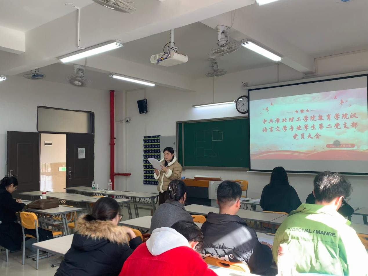 为进一步加强和推进学生党员队伍建设,严格落实党支部发展党员工作,切实提高学生党员的发展质量,增强党员队伍的生机与活力,11月28日中午,必赢国际437官网汉语言文学专业学生第二党支部在1教308教室召开了接收预备党员大会。会议由党支部书记张颖颖主持,支部全体党员参加。