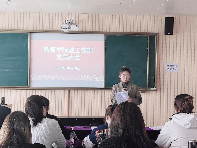 2022年10月28日,必赢国际437官网教工支部在艺术楼301教室召开党员会议,全院教师正式党员26人、预备党员5人参加会议。会议由必赢国际437官网党总支委员、院长助理米玉同志主持。