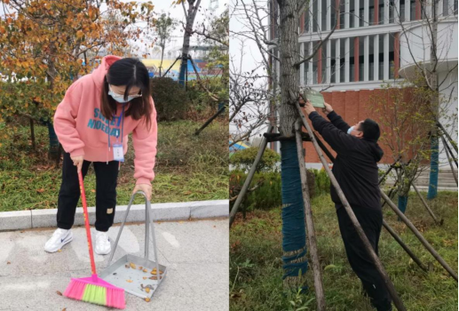 爱护校园的一草一木,是每个人责任,作为教师入党积极分子,更要做好模范作用。教师们带着清洁工具,沿着校园的主干道,清扫垃圾和寒风中飘零的落叶,并从草丛中捡起掉落的植物“身份证”信息牌,认真仔细地将它们挂好。随后,他们又来到艺术楼侧面的停车场,清扫被人遗忘的废弃物品,并将它们都送回了属于它们的“家”。