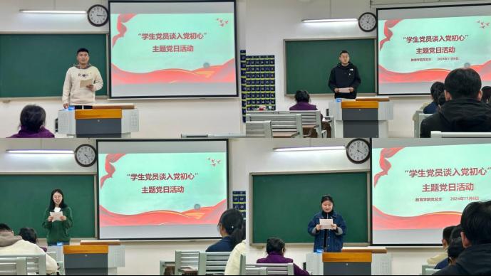 为深入学习贯彻党的二十大精神,引导学生党员在新的学习生活环境中,保持共产党员的先进性,在专业学习、组织纪律、文化素质提升等方面发挥引领和示范作用,自觉做习近平新时代中国特色社会主义思想坚定信仰者和忠实实践者,必赢国际437官网党总支于2024年11月6日在1教213教室,举行“2024级学生党员谈入党初心”主题党日活动。活动由陈慧慧同志主持,学院党总支副书记孟向红、各学生党支部书记及27名新生班级学生党员参加了活动。