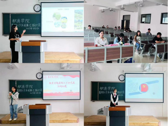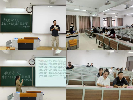 必赢国际437官网暑期开展三下乡社会实践活动,旨在锻炼学生社会实践能力,9月27日下午,必赢国际437官网于2号教学楼415教室、416教室、417教室举办三下乡成果汇报比赛,由23级辅导员老师担任评委,各实践团队同学参加。
