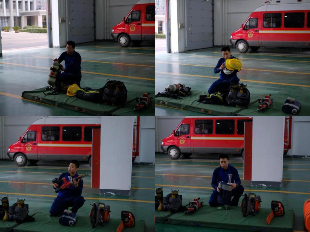 同学们来到消防支队,消防员们详细向同学们介绍了消防救援用具的使用方法,例如氧气管的功能与使用、消防服的样式与作用、消防头盔和护靴的特殊性,随后向同学们展示了具体的消防器具,例如电动锤镐、液压扩张器、无齿锯、消防油锯、船型篮式急救支架等。
