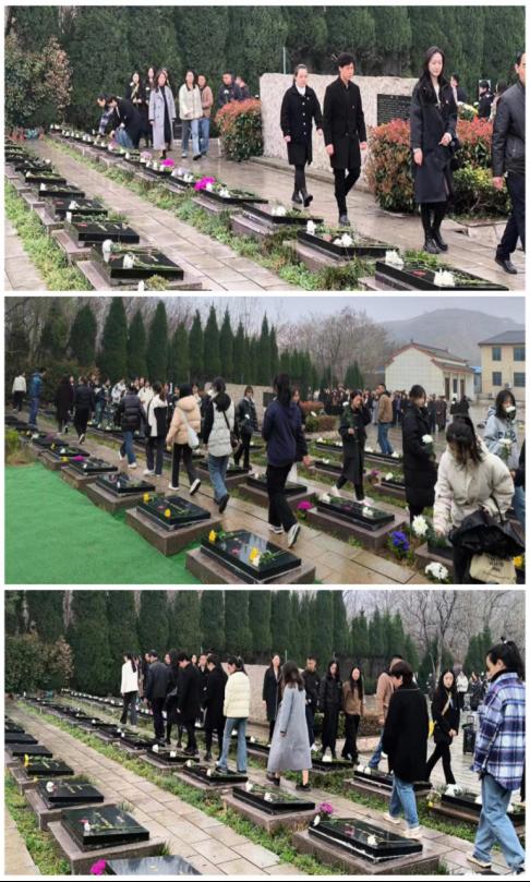 在“清明节”即将来临之际,必赢国际437官网、马克思主义学院及校团委于2024年3月27日下午组织部分师生党员和共青团员前往淮北市杜集区革命烈士陵园开展扫墓活动。参加扫墓活动的师生党员和共青团员共计158人。