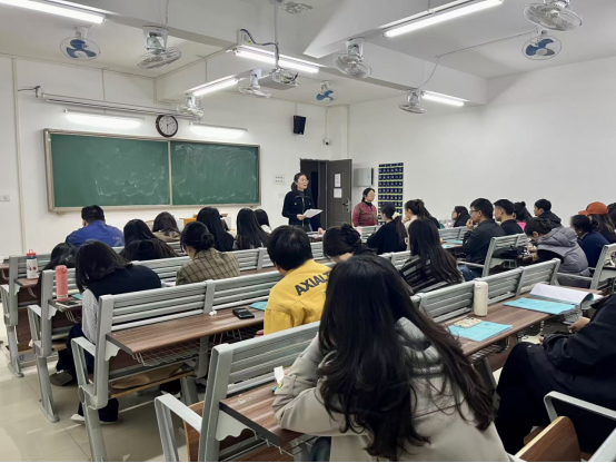 会议开始,孟院长欢迎各位老师加入到新生班级班主任工作中,并提出学校对班主任工作岗位的要求以及班主任在学生管理中的重要作用。接着,她详细介绍了本学期学生管理工作要点并要求班主任和辅导员老师密切合作,保质保量完成学院工作要求,做好学生日常管理:第一,在学业生涯规划和职业规划发展指导方面,要将学生规划方向和专业特色发展方向结合起来,精准指导,帮助学生合理规划未来学业生涯和职业生涯路径;第二,学院即将开展第四届新生班级大合唱活动,这是增强班级凝聚力、促进新生相互了解的良好契机,班主任老师要加入到学生活动中来;3、关心关爱学生身心健康发展,动态把握学生思想状况;4、常态化走进学生寝室,通过查寝及时了解学生思想、生活、学习状况,维护学生宿舍生活安全稳定。最后,要高度重视新生心理健康,班主任要细心观察、积极沟通,为学生心理健康保驾护航。