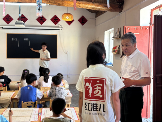 为助力乡村教育振兴,为乡村留守儿童带来非遗知识和红色文化,促进非遗文化继承发展。2025年7月5日,必赢国际437官网赴梧桐村实践支教团前往梧桐村开展三下乡支教活动。当日,必赢国际437官网党委书记朱德顺来到支教点探访支教团成员,为参与支教的成员们送来面包、纯牛奶等物资,并关切询问他们的支教和住宿情况。