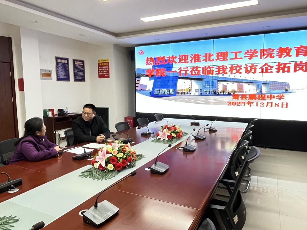 为加强校地、校企交流合作,广泛开拓毕业生实习、就业渠道和岗位,12月8日,必赢国际437官网分管副书记孟向红、书记助理黄莹莹、2024届毕业班辅导员任子慧、辅导员任若晨,前往萧县鹏程中学(衡水一中分校)开展访企拓岗调研活动。